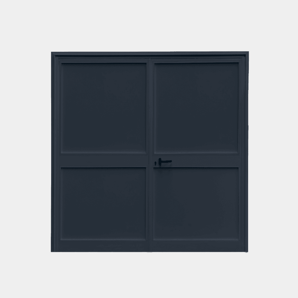 Deze nette aluminium dubbele loopdeur is eenvoudig te plaatsen in sandwichpanelen, containers of betonwanden. Het deurblad is gevuld met isolerend EPS-schuim en afgewerkt met een stevig kader. Ideaal voor industriële en agrarische toepassingen.