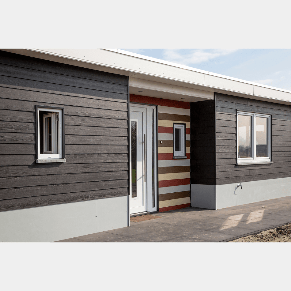 Plank Original van Swisspearl is een vezelcement gevelpaneel met een authentieke houtstructuur die warmte en karakter toevoegt aan elke gevel. De panelen worden klassiek bevestigd met roestvrijstalen schroeven of nagels in zicht, wat zorgt voor een ambachtelijke en natuurlijke uitstraling. Het duurzame vezelcement is onderhoudsarm, weer- en vorstbestendig en non-combustible (brandklasse A2-s1,d0). Leverbaar in natuurlijke houttinten die met de jaren op een fraaie manier verouderen, waardoor de gevel een tijdloze en levendige uitstraling krijgt.