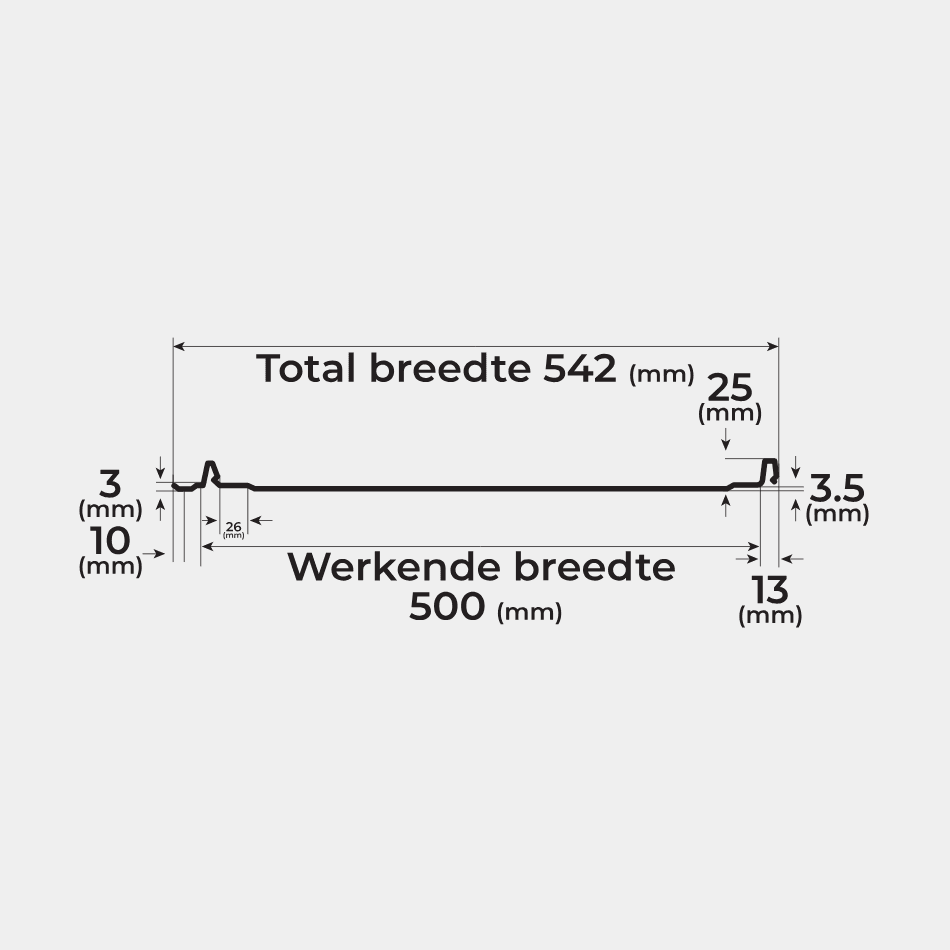 Het felsprofiel creëert verticale lijnen met een luxe uitstraling, zonder zichtbare schroeven. Zowel voor dak als gevel toepasbaar.