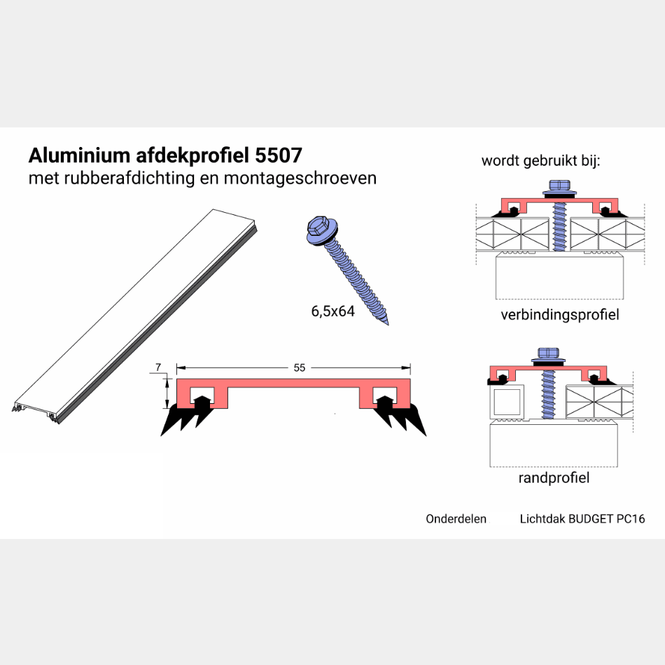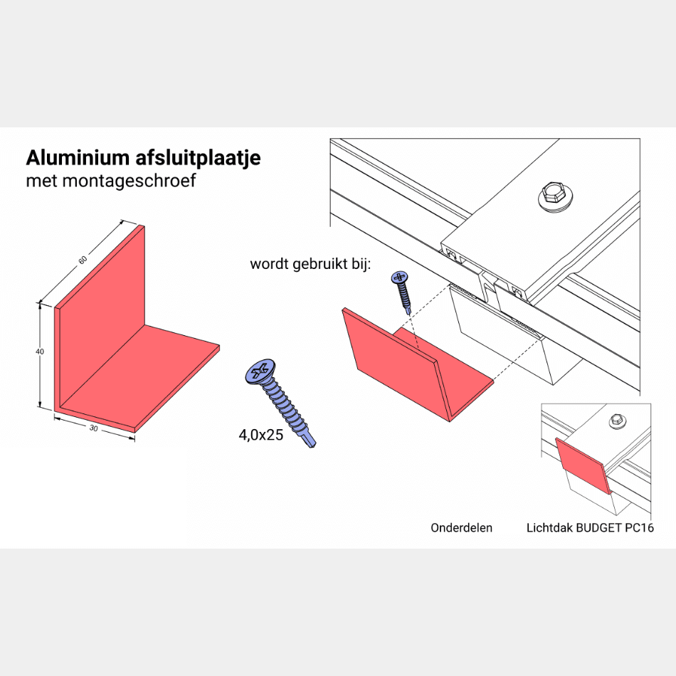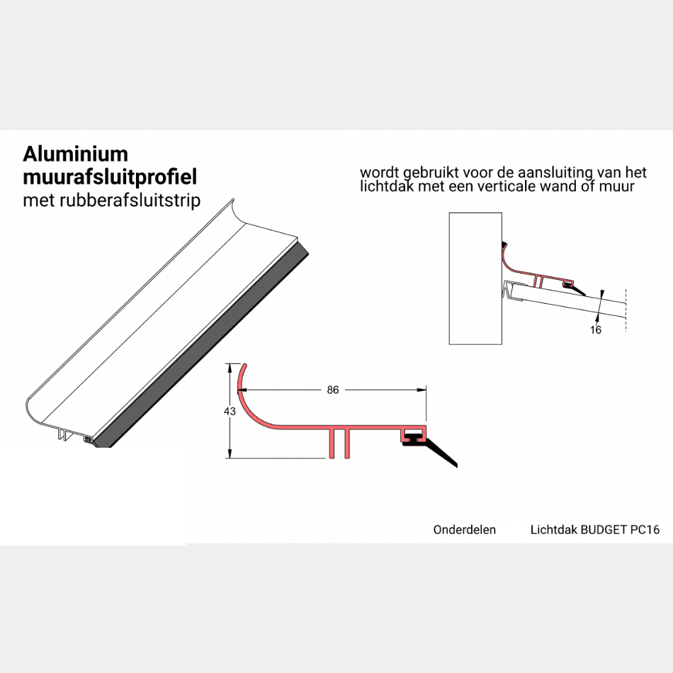 Extra opties: aluminium muuraansluitingsprofiel, gepoedercoate aluminium profielen, gootsysteem, losse platen voor zijkanten, aluminium onderconstructie.