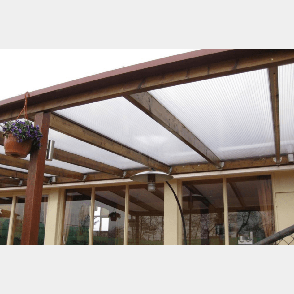 Deze budgetvriendelijke lichtdoorlatende dakoplossing is ideaal voor wie op zoek is naar een functionele én voordelige overkapping. De 16 mm polycarbonaat kanaalplaten bieden bescherming tegen regen, uv-straling en zonlicht, terwijl ze tegelijkertijd veel natuurlijk daglicht doorlaten. Dankzij de meegeleverde aluminium profielen, rubbers en bevestigingsmaterialen is het systeem eenvoudig te monteren op een bestaande onderconstructie met een minimale helling van 10°. Het totaalpakket bevat alles wat je nodig hebt voor een snelle, nette en waterdichte afwerking.