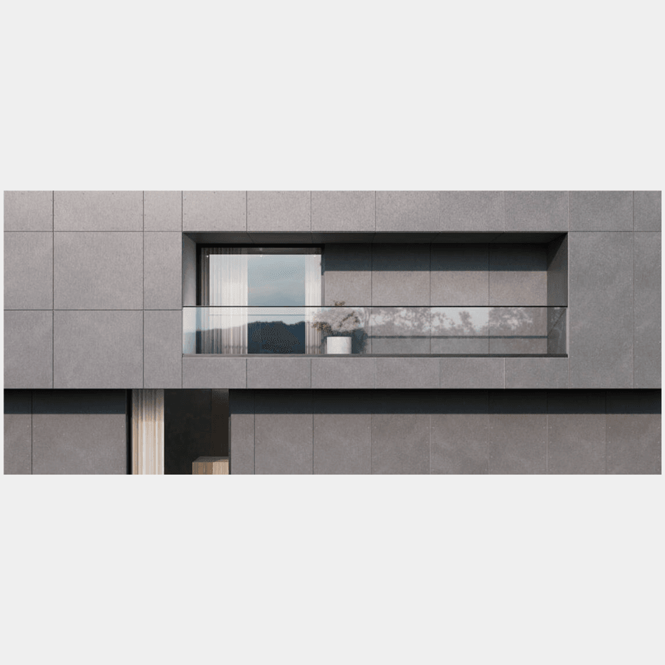 Dit hoogwaardige gevelpaneel van vezelcement is door-en-door gekleurd en voorzien van fijn gefreesde, lineaire groeven die een dynamisch 3D‑effect creëren. Door het spel van licht en schaduw krijgt je gevel voortdurend een levendige uitstraling . Na verloop van tijd ontwikkelt het oppervlak een subtiele patina, waardoor de uitstraling verdiept en karakter krijgt.