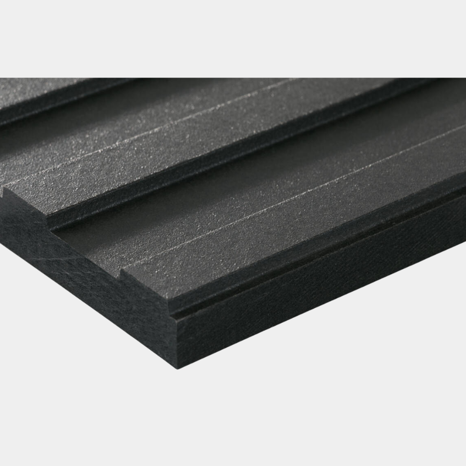 Een large‑format vezelcement gevelpaneel met lineair gefreesde structuur die licht‑en‑schaduweffecten activeert. Door het lineaire reliëf ontstaat een levendig en speels gevelbeeld dat bij elke invalshoek anders oogt.