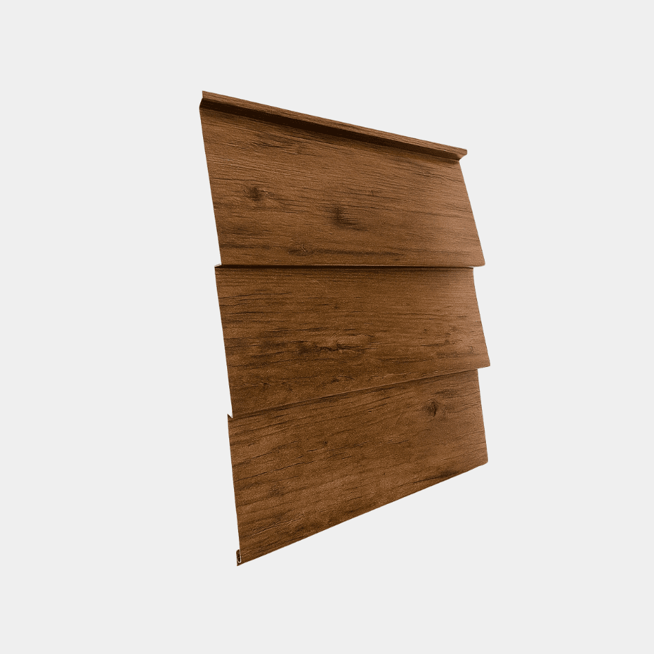 Het stalen rabat potdekselprofiel combineert de uitstraling van hout met de duurzaamheid van staal. Ideaal voor gevelbekleding bij woningen, schuren en agrarische gebouwen. Onderhoudsarm, snel te monteren en beschikbaar in 3 verschillende houtnerf kleuren.