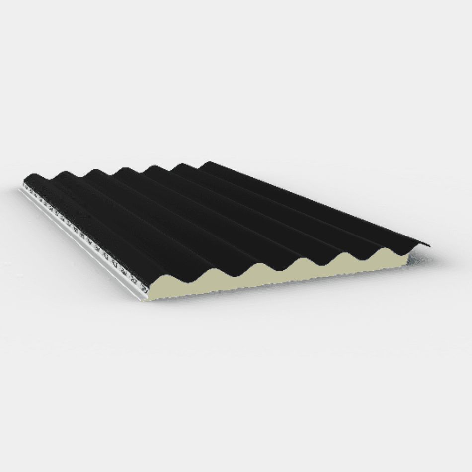 Dit 1000 mm brede dakpaneel met een golvende bovenplaat heeft een kern van PIR-schuim en twee gecoate staalplaten. Het biedt uitstekende isolatie, luchtdichtheid en brandveiligheid. Geschikt voor nieuwbouw en renovatie. Beschikbaar in 4 diktes en vele kleuren.