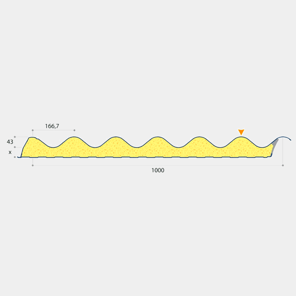 Dit 1000 mm brede dakpaneel met een golvende bovenplaat heeft een kern van PIR-schuim en twee gecoate staalplaten. Het biedt uitstekende isolatie, luchtdichtheid en brandveiligheid. Geschikt voor nieuwbouw en renovatie. Beschikbaar in 4 diktes en vele kleuren.