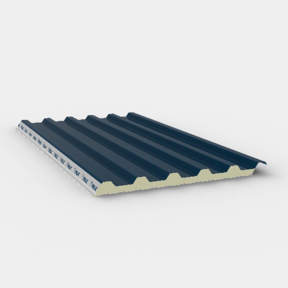 Dit 1000 mm brede dakpaneel met trapeziumvormige bovenplaat heeft een kern van PIR-schuim en twee gecoate staalplaten. Het biedt uitstekende isolatie, luchtdichtheid en brandveiligheid. Geschikt voor nieuwbouw en renovatie. Beschikbaar in 5 diktes en vele kleuren.