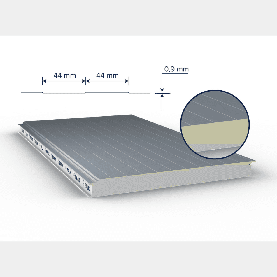 Dit gevelpaneel met boxprofilering en PIR-schuimkern combineert een strakke uitstraling met uitstekende thermische isolatie. Dankzij de gecoate buitenplaat is het paneel extra duurzaam en corrosiebestendig. Ideaal voor zowel nieuwbouw als renovatieprojecten.
