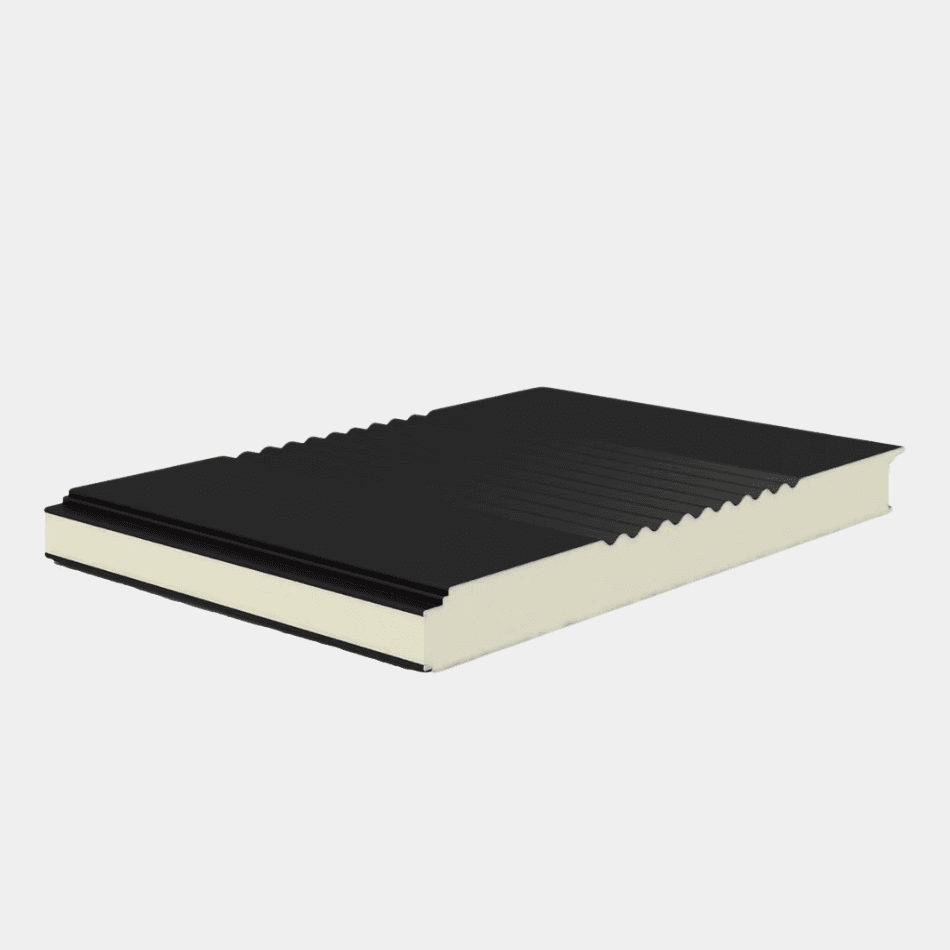 Dit sandwichpaneel gevel met een lijn en microrib profilering en een verborgen bevestiging combineert een strakke uitstraling met uitstekende thermische isolatie. Dankzij de gecoate buitenplaat is het paneel extra duurzaam en corrosiebestendig. Beschikbaar vanaf 200m².