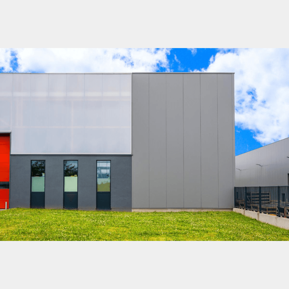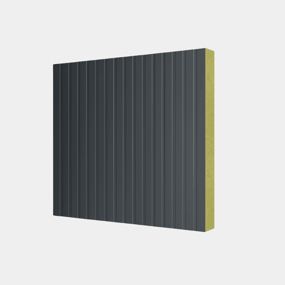 Dit gevelpaneel met steenwolkern en 2 gecoate staalplaten biedt optimale brandwerendheid en geluidsisolatie. Dankzij de stevige opbouw en strakke afwerking is het ideaal voor industriële en utilitaire geveltoepassingen waar veiligheid voorop staat.