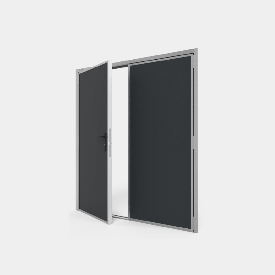 Sandwichpaneel Dubbele deuren zijn ideaal wanneer regelmatig groot materiaal in of uit de ruimte moet. Dankzij de RVS-omranding, sandwich- of polyester panelen en degelijke afwerking zijn ze robuust, onderhoudsarm en geschikt voor binnen- en buitentoepassingen. Leverbaar in maatwerk, met actieve linker- of rechterdeur en optioneel voorzien van kunststof of RVS raamkozijnen. Snel leverbaar, ook in afwijkende maten.