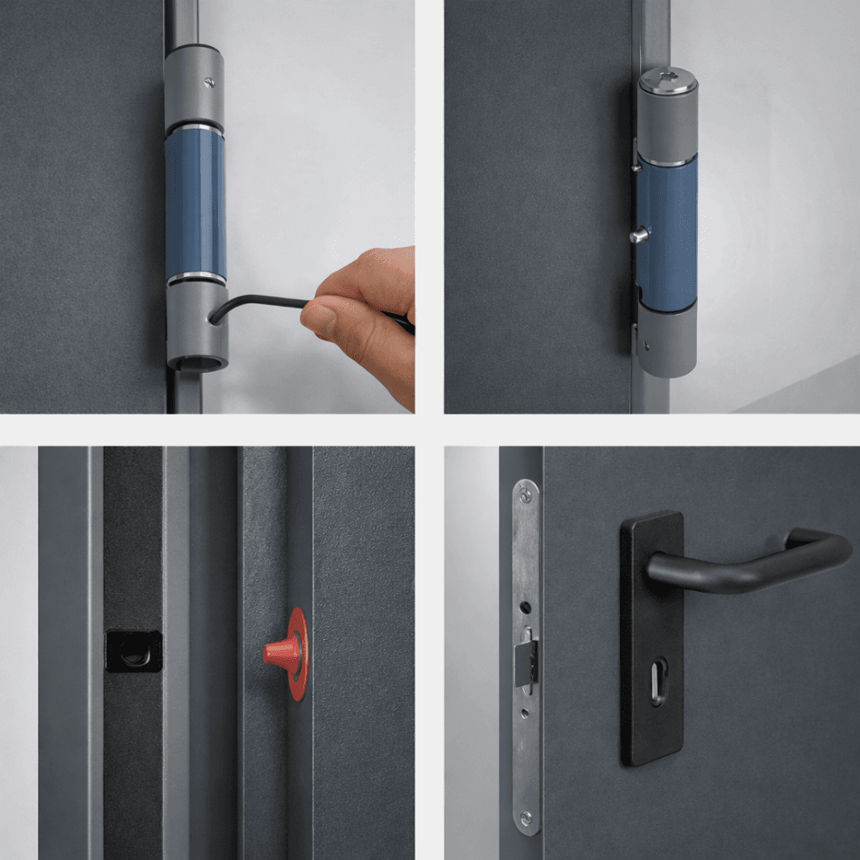 Dankzij de brandwerende uitvoering biedt deze loopdeur effectieve bescherming tegen branddoorslag en -overslag, zonder concessies te doen aan duurzaamheid en uitstraling. De strakke RAL 7016 kleur zorgt voor een nette, tijdloze integratie in uiteenlopende bouwomgevingen zoals bedrijfshallen, technische ruimtes en openbare gebouwen.