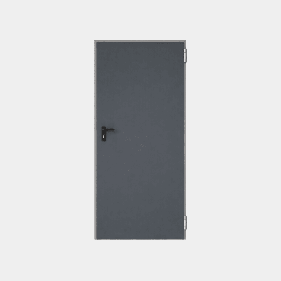 Brandwerende stalen loopdeur met 60 minuten brandwerendheid, uitgevoerd in RAL 7016 Antraciet. Ontwikkeld voor veilige toepassingen binnen industrie en utiliteitsbouw.