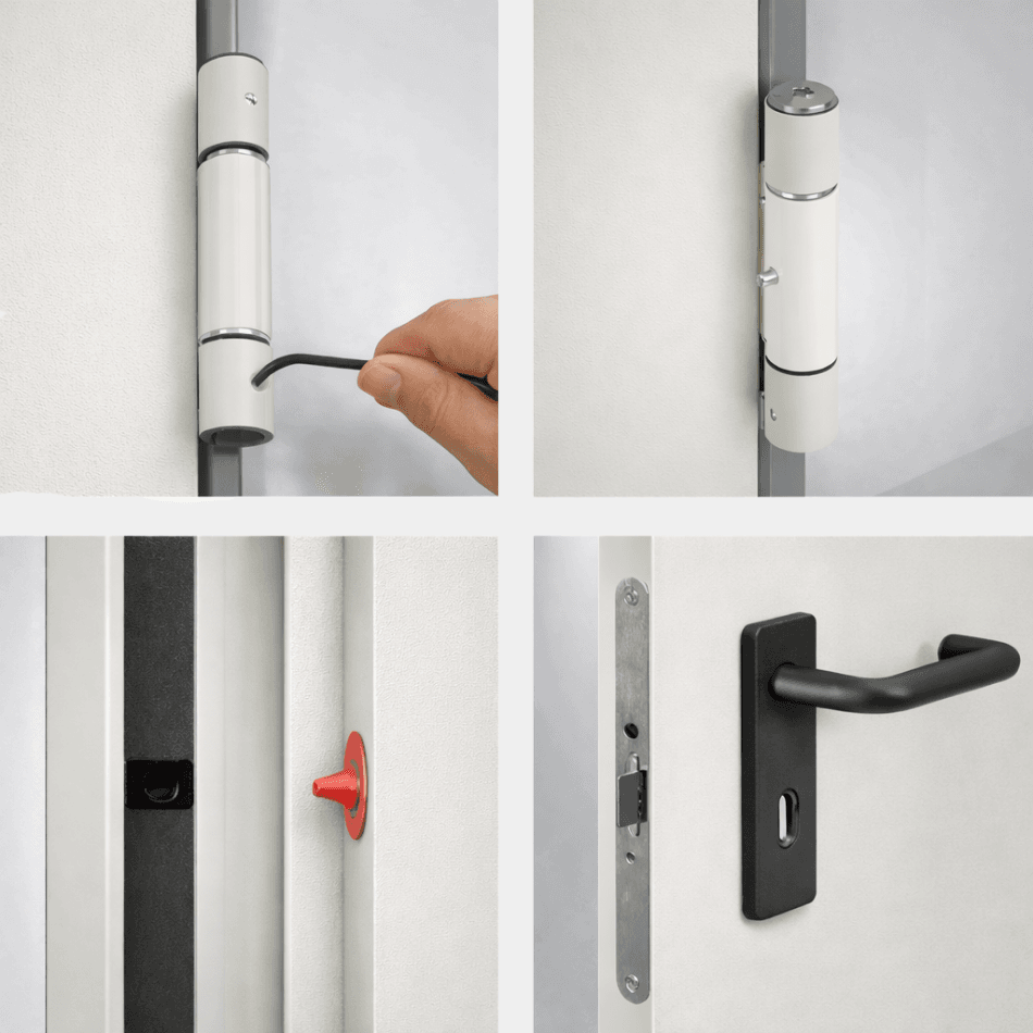 Dankzij de brandwerende uitvoering biedt deze loopdeur effectieve bescherming tegen branddoorslag en -overslag, zonder concessies te doen aan duurzaamheid en uitstraling. De neutrale RAL 9002 kleur zorgt voor een nette, tijdloze integratie in uiteenlopende bouwomgevingen zoals bedrijfshallen, technische ruimtes en openbare gebouwen.