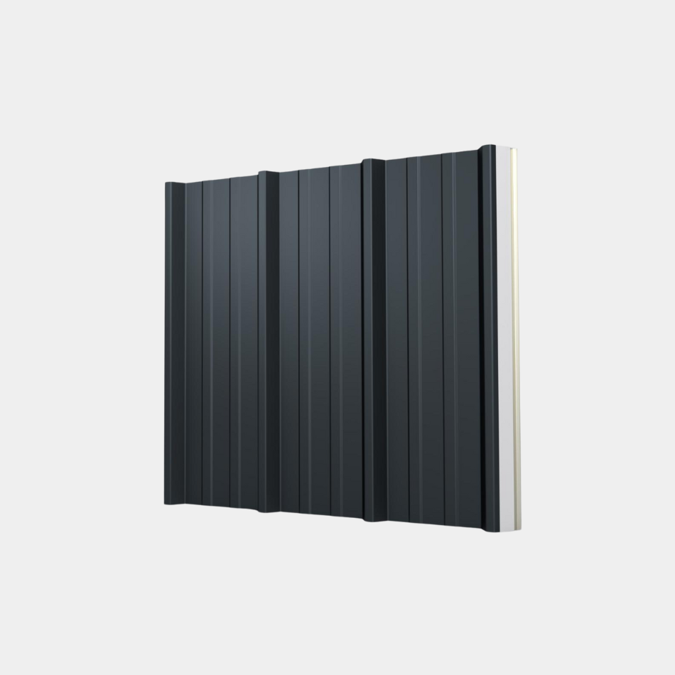 Dit 1100 mm brede dakpaneel met trapeziumvormige bovenplaat heeft een kern van PIR-schuim en twee gecoate staalplaten. Het biedt uitstekende isolatie, luchtdichtheid en brandveiligheid. Geschikt voor nieuwbouw en renovatie. Beschikbaar in 6 diktes en vele kleuren.