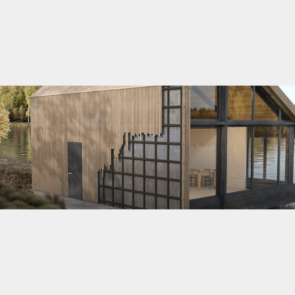 Een large‑format vezelcement gevelpaneel met lineair gefreesde structuur die licht‑en‑schaduweffecten activeert. Door het lineaire reliëf ontstaat een levendig en speels gevelbeeld dat bij elke invalshoek anders oogt.